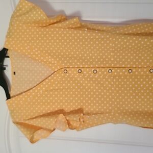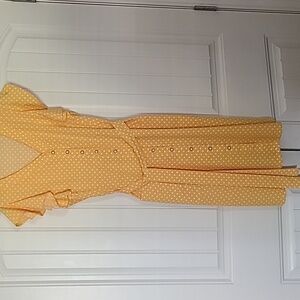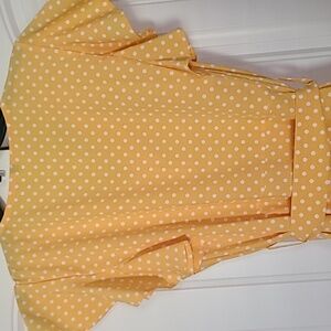Mitilly large yellow/gold polka-dot summer dress with belt. Short butterfly sleeves, v-neck,button down midi dress with 2 front patch pockets. If you like yellow this is the dress for you. In excellent condition.
