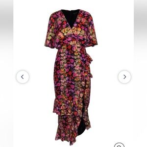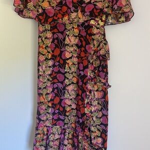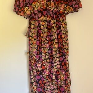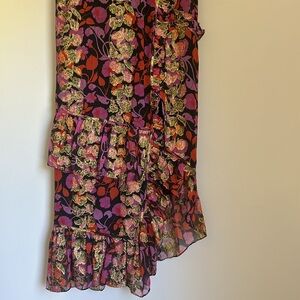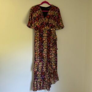 Saloni - Black w/ Pink, Orange & Gold Floral Print Maxi Dress Size 4