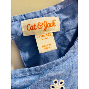 Cat & Jack Girl's Chambray Eyelet Ruffle Sleeve Tiered Dress L (10/12)