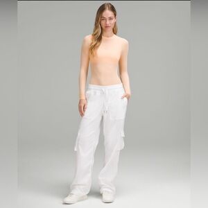 Features: Soft fabrication; lightweight design; scoop neckline, think shoulder straps; racerback detail; zippered back pocket; oversized patch pockets at front