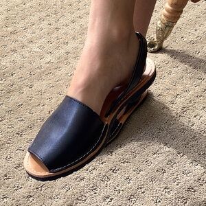 Lightly Worn. These have elastic bands in the sling back for comfort.