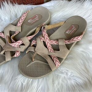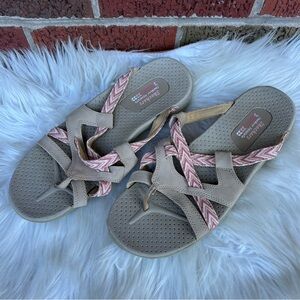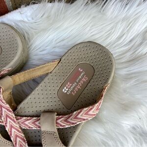 Skechers Tan and Pink Chevron Strappy Outdoors Chunky Sandals