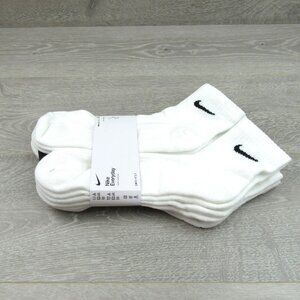 Nike Everyday Cotton Cushioned Ankle Socks 6 Pack White w/ Black Swoosh Logo