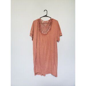 Kori America Womens Sz M Kimono Duster Orange Short Sleeve Open Front Lace Back