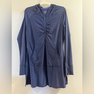 Athleta WICK-IT™ WANDERER COVERUP in excellent condition, Front pocket with internal secure zip Thumbholes Side slits Polyester/Spandex WICK-ITTM. Coverup fabric acts like sunscreen in a shirt WICKING. Pulls sweat away from the body so it can evaporate faster BREATHABLE. Sweat can travel through the fabric so it can evaporate on the surface RATED UPF 50+