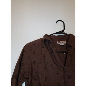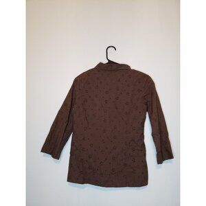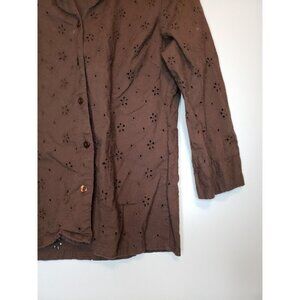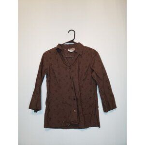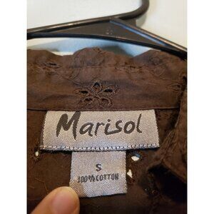 Marisol Womens Sz S Blouse Button Front Eyelet Lace Brown 100% Cotton Boho