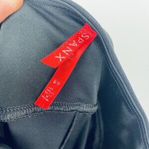 Elevate your casual wardrobe with these Spanx leggings in size S. The high-rise design and elastic waist provide a comfortable fit, while the slimming and shaping features ensure a flattering silhouette. Perfect for summer, fall, or spring, these leggings are made from a blend of polyester, faux leather, nylon, leather, cotton blend, and 100% cotton, making them machine washable and easy to care for. The solid black color and seamless design make them versatile and suitable for any occasion, from a day out with friends to a workday at the office. The Spanx brand is known for its quality and durability, and these leggings are no exception. Add them to your collection today!