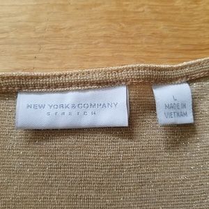 New York &Compaby Gold Shimmer V-Neck Ruched Top-Large