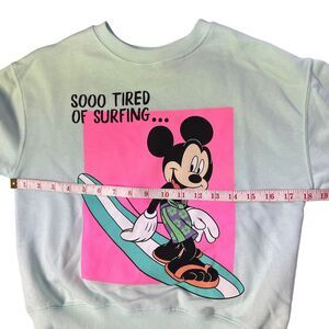 Zara x Disney Girl's 8-9 Mickey Mouse Surf Sweatshirt Green So Tired Of Surfing