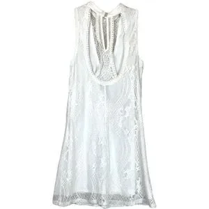 Francesca’s Trixxi White Lace High Mock Neck Shift Slip Tunic Dress size XS
