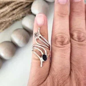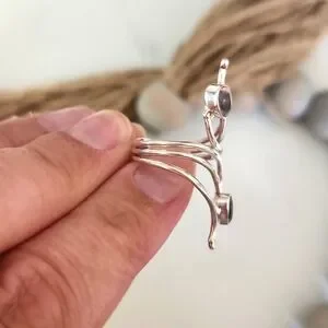 NEW Sterling Silver Double Gemstone Bypass Ring