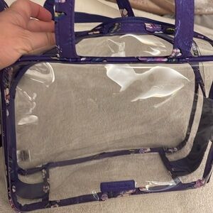 Vera Bradley Cosmetic Case in Wild Roses. New, never used cosmetic case. Clear plastic with fabric accents and carry handle. Double zippers.