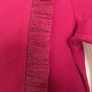 Color is a beautiful magenta color with iridescent skirt overlay and ruffles in front & back
