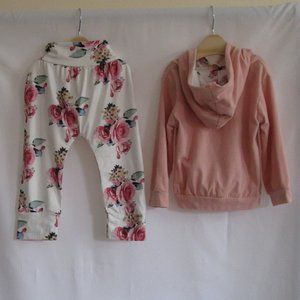 SHEIN Girls Pink Floral Sweatshirt and Matching Pants Size 100 (3-4 yr) 95% Cotton 5% Spandex. Used - Good Condition.