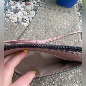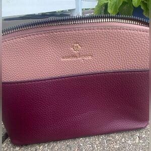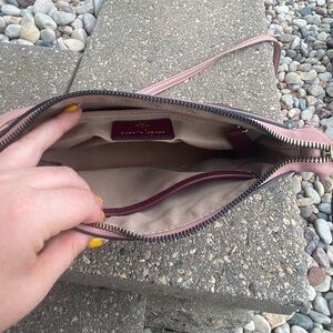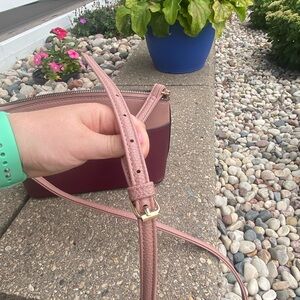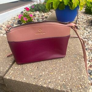 Super cute crossbody bag purse from Nanette Lepore! Cute two toned leather design. Top is light pink and the bottom is a maroon color. Stunning color combo to look at! All functioning zippers and snaps. Lots of compartments inside the purse. Long, adjustable strap. Super cute and in great condition! :)
