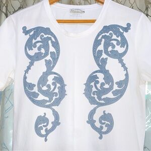 GIANNI VERSACE COLLECTION WHITE BLUE PRINT SHORT SLEEVE CREWNECK T-SHIRT TEE