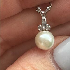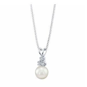Akoya Cultured 8-8.5mm Pearl & 0.13 ctw Diamond 14kt White Gold Pendant