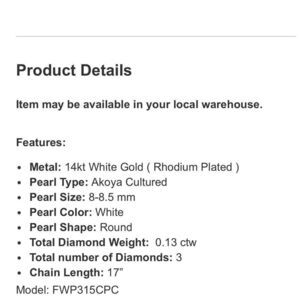 • Metal: 14kt White Gold ( Rhodium Plated)
