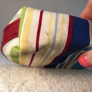 Longaberger Small Cosmetic Case with attached mirror, small pin hole on the front of case and small black markings on bottom, as shown in pictures