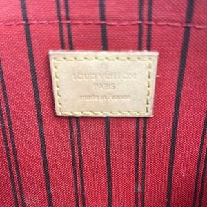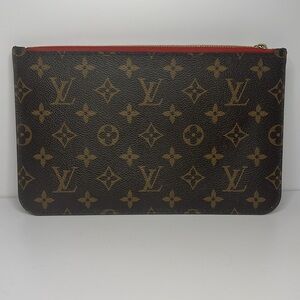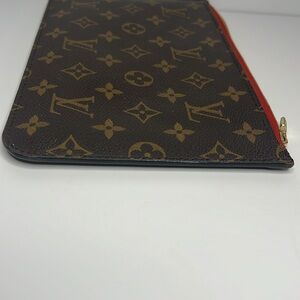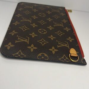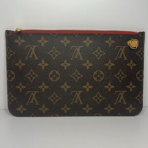 LV monogram Neverfull pochette with cherry cherise interior.