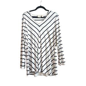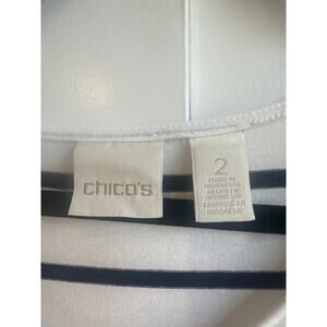 Chico’s Lightweight White with Dark Navy Blue V-Shape Stripes Top