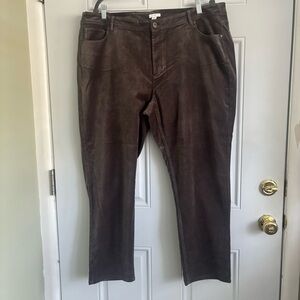 This cute skirt is a small print, beige and black plaid. It is completely lined and has a 7 inch invisible side zipper with hook and eye closure. It also has two 3inch darts at waistline in the back. Fabric content is 54% cotton, 41% rayon viscose and 5% spandex elastane, machine washable. Skirt is in new light condition. Measurements are length 17 inches and waist line approximately 28 inches.