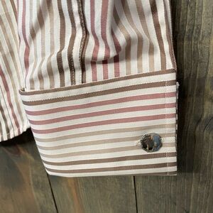 100% cotton slim fit ladies French cuff dress shirt. US size 4. I love this but it no longer fits. #perilsofaging Cuff links not included. Questions? Leave a comment below!