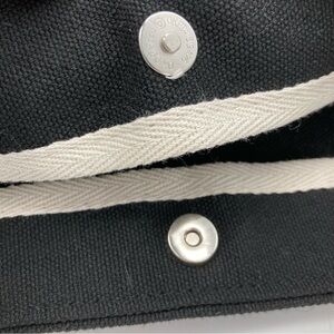 This listing is for a Barnes & Noble canvas tote. It has a magnetic snap closure, top handles, and a repeating logo on one side, with a brand logo patch on the other. This tote is in excellent used condition with no major flaws to note. Please see photos for details and measurements.