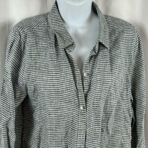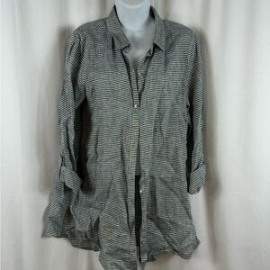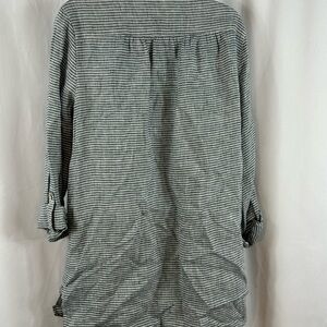 Artisan NY gray/white Cotton pin stripped long roll sleeve mother of pearl button front collared shirt dress in size medium small stain on lower hem (see photo 5)