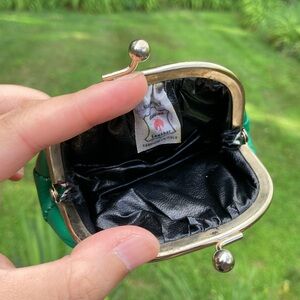 Vintage Genuine Leather Made in Italy Green Kiss Style Clasp Coin Purse Bag
