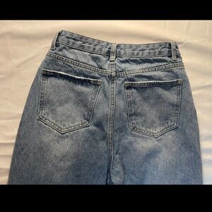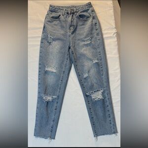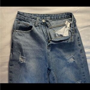 Ripped Washed Straight Leg Jeans.
