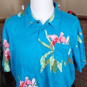 CUBAVERA TROPICAL FLORAL POLO MEN'S SHIRT TURQUOISE SIZE XXL