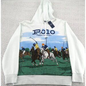 Polo Ralph Lauren Rugby Graphic Fleece Hoodie Mens Size Large Glacier NEW $248