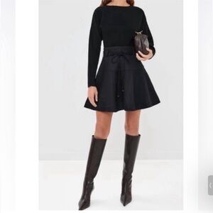 Ruched, Long-sleeve, Wrap Front, Ruffle Hem, V-neck, back tie fastening. In Black/ Bone (animal print, like a zebra/ tiger print) Description: Black-and-white animal patterns further the dynamic verve of this flirty silk-chiffon minidress cut with a blousy bodice and ruffly, drawstring-ruched skirt. Silk 100%