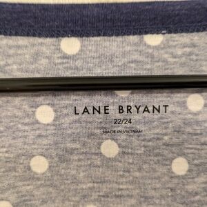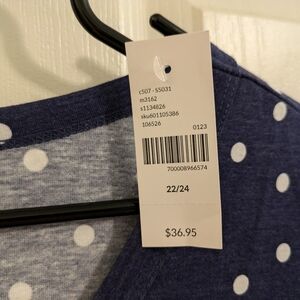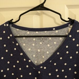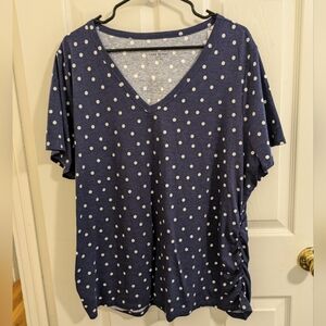 Purple , vneck tee with white polka dots and ruched sides. New with tags and from a smoke free home.