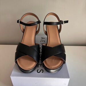 New in box, very cute and comfy black wedge, size 10w. 3in heel