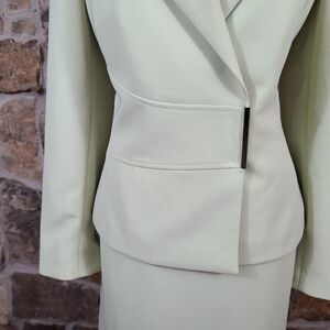 Lovely spring green Tahari skirt suit, women's size 12. Asymmetrical front closure.