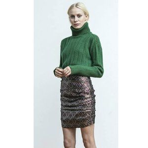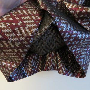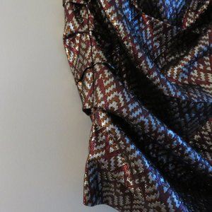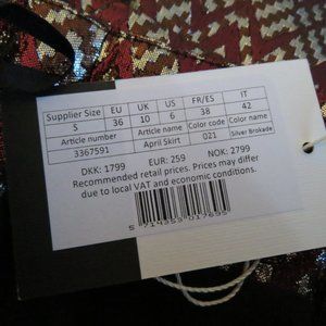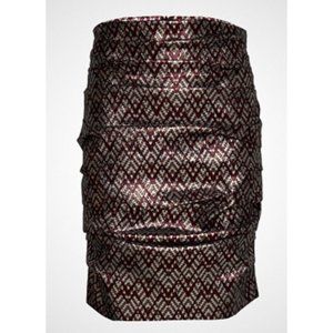 BIRGITTE HERSKIND Silver Red Metallic Brocade Ruched April Skirt - Size US 6