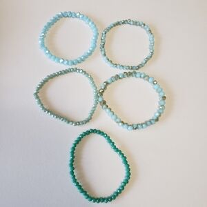 Lot of 5 Crystal bracelet, stretchy, Turquoise and blue tone, pre owned Excellent condition, please check out all pictures, Thank you