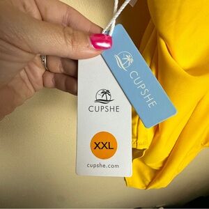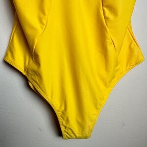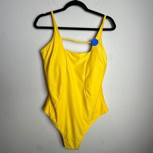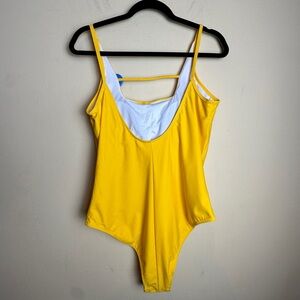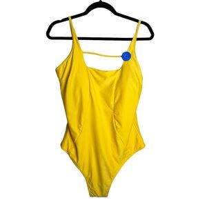 Cupshe Bright Yellow One-Piece Swimsuit NWT Retro Blue Button Cheeky Size XXL