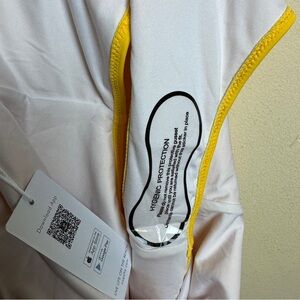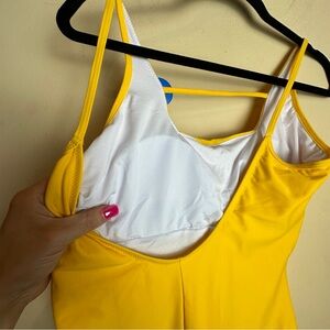 Cupshe Bright Yellow One-Piece Swimsuit NWT Retro Blue Button Cheeky