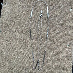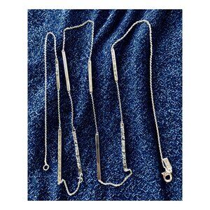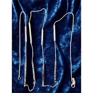 Vintage Silpada "Fine Lines" Necklace is crafted from .925 Sterling Silver. Features 925 Sterling Silver engraved and hammered bars between a fine chain link. Can be worn full length or doubled up for a layered look, item number is N3020. Necklace is approximately 40 inches in length with a lobster claw clasp. Has the Silpada signature arrowhead logo and 925 stamp of quality! In Gently Used Condition.