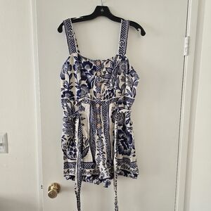 With a striking floral print in a mix of blue and white hues, this FARM Rio romper is a stand-out one-and-done option for warm weather. Wear yours with an easy pair of slide sandals.