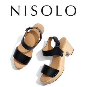 Nisolo 🖤 Women's Open Toe Clogs, Black, Size 7, 3" Heel