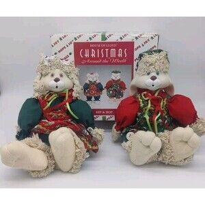 Add some festive charm to your home decor with this delightful Hip and Hop Bunny 2pc Set from House of Lloyd's Christmas Around the World collection. Made in China in 1996, these original pieces come boxed and are ideal for collectors or as a unique Christmas gift. Whether displayed together or separately, these charming bunnies are sure to add a touch of whimsy to your holiday decorations.