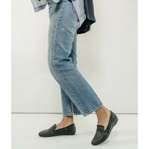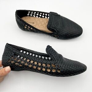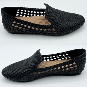 Birdies The Woven Starling Flat Loafer Black Faux Leather Smoking Slipper 7.5