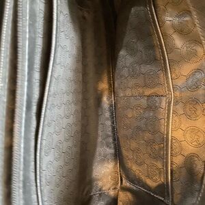 Michael Kors black leather tote bag - in gray shape. Some fraying on one handle as shown.