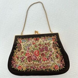Vintage Micro Petit Point Floral Kiss Lock Hand Bag