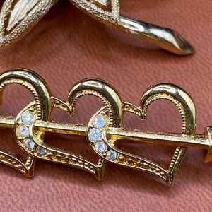 Avon Vintage 3 Heart Arrow Brooch / Avon Blooming Lotus Flower Brooch Bundle