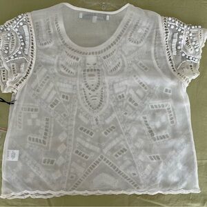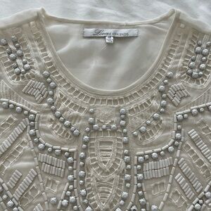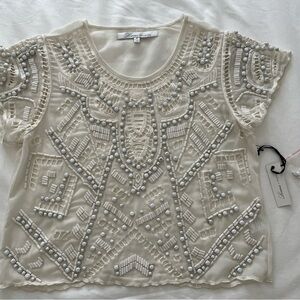 Lovers + Friends Daycation Crop Top in size Medium . Poly blend with embroidered detail. Bead and rhinestone accent throughout.